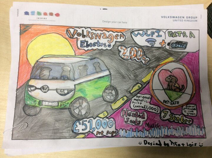 On Wednesday, the whole school enjoyed a visit from representatives of Volkswagen. The children attended an assembly where they learned about what VW does, the wide range of careers available, and the cars they manufacture. Each year group then took part in a car-themed activity: KS1 created junk models, Lower KS2 explored sustainability, and Upper KS2 designed a car based on a customer specification.